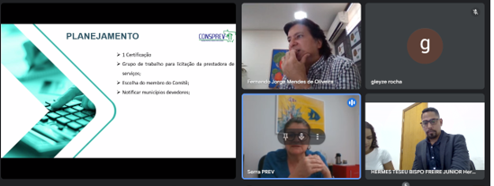 Nos dias 29.01.2024 e 02.02.2024, foi realizada a 1ª reunião dos membros do Comitê Técnico, realizada de forma virtual com a presença de Fernando Jorge Mendes de Oliveira, Secretário Adjunto Especial de Previdência do Município de Cuiabá e de Laura Pereira Diretora Executiva do SERRAPREV, bem como do assessor técnico-jurídico, Dr. Hermes Teseu Bispo Freire Júnior e a Agente Administrativa, Gleyze Oliveira Rocha., para tratar da prestação de contas do exercício de 2023 e demais assuntos de interesse do Comitê e do CONSPREV, conforme Ata de reunião publicada em 22.02.2024: