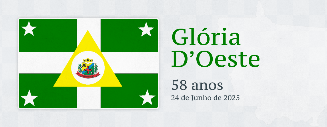 Neste dia especial, celebramos os 58 anos de Glória D’Oeste. Uma trajetória marcada pelo trabalho, pela dedicação de sua população e pelo desenvolvimento constante.